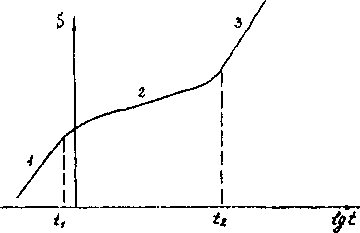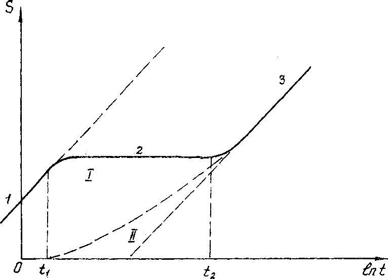 лельный участку 1). Время t2 наступления этого асимптотического режима, описываемого коэффициентом уров-