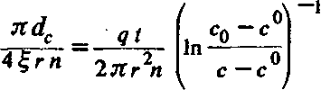 Нужно заметить, что непосредственная интерпретация опытных данных на основе рекомендованных решений не всегда обеспечивает удовлетворительную точность расчетных миграционных параметров, так как в этих решениях не учитывается емкость наблюдательной скважины. Пренебрежение же разбавлением индикатора в скважине, наряду с кольматацией ее прифильтровой зоны, приводит к тому, что в процессе опыта концентрация индикатора в пласте (непосредственно на внешней стенке скважины) отличается от замеряемой. Период времени, в течение которого отмечается подобное несоответствие, подчас соизмерим с длительностью самого опыта. Этот эффект получил название гидрохимической инерционности наблюдательных скважин. Его характерным показателем может слу-