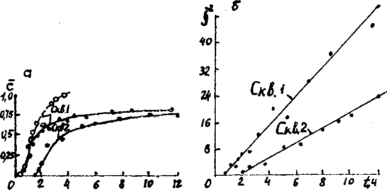 а по углу наклона прямой к оси времени <р— комплексный параметр массообмена: