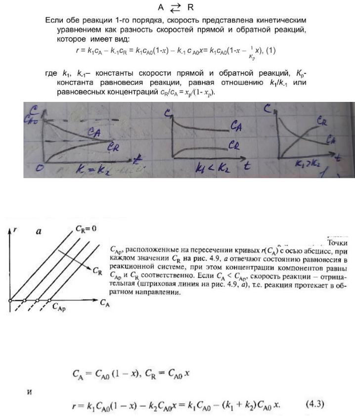 Чтобы получить однофункциональную зависимость для скорости реакции, концентрацию продукта реакции выразим через степень превращения х компонента А: