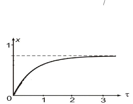 Если в каком-то реакторе уменьшить степень превращения, то в другом ее надо увеличить. Выигрыш в первом из них будет меньше, чем его увеличение во втором: зависимость х( ) - нелинейная затухающая растущая функция (см. рис.2). Поэтому равные i дают максимальную интенсивность.