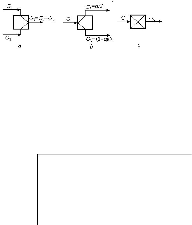 Рис. 2. Расчётные элементы ХТС: а смеситель, b делитель, с реактор