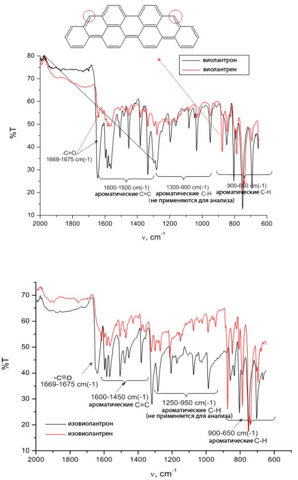 Рис. 4.10. ИК спектры изовиолантрона и продукта го восстановления – изовиолантрена.