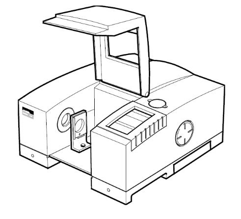 Инфракрасный луч входит в кюветное отделение через апертуру, находящуюся слева. После прохождения сквозь образец луч попадает на датчик через апертуру на правой стороне кюветного отделения.