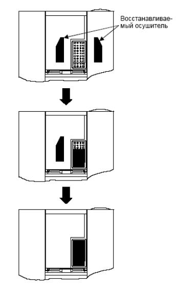 Имеется также комплект осушителя, допускающий регенерацию после выработки шестимесячного ресурса. Пакеты с этим осушителем могут быть восстановлены выдерживанием в сушильном шкафу при 250°C в течение 8 часов. Последующее охлаждение должно проводиться в сухой атмосфере. Для получения оптимального результата восстанавливайте пакеты непосредственно перед употреблением. Стандартный комплект содержит четыре пакета восстанавливаемого осушителя для того, чтобы Вы могли немедленно заменить весь осушитель и не оставлять прибор без осушителя на время его восстановления. При установке регенерируемого осушителя следуйте процедуре, приведенной на рис.3.15.