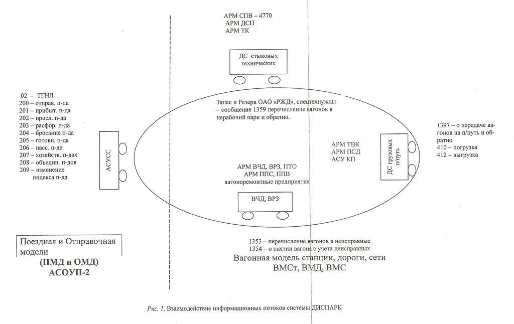 Дорожный уровень реализуется в АСОУП на базе средств ведения вагонной модели дороги (ВМД), поездной модели дороги (ПМД), отправочной модели дороги (ОМД) в увязке с линейными системами по сбору исходной инф-и, в частности с АРМов ТВК, ПСД по инф-и о погрузке в вагоны, снимаемой с корешков дорожных ведомостей. Обеспечена инф-онная стыковка системы ДИСПАРК с ЭТРАН, АСОУП, АСУ ЛР.