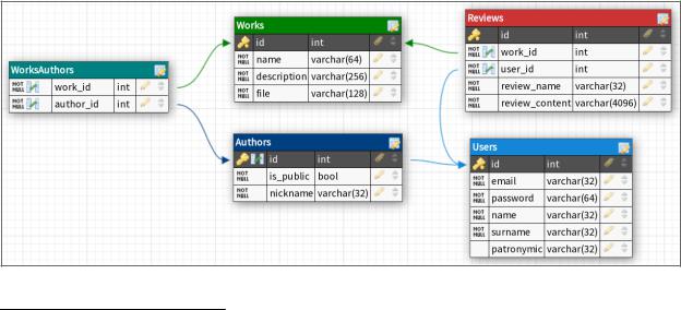 3.4) file — путь к файлу работы на сервере (VARCHAR(128), непустое). 4. Таблица WorksAuthors («Работы авторов»).
