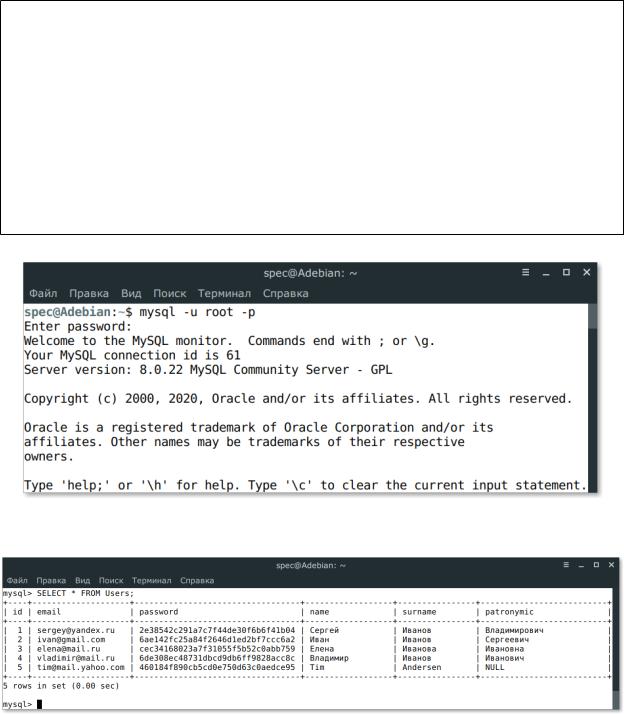 Рисунок 2 — MySQL Monitor Выведем содержимое таблицы Users (рис. 3).