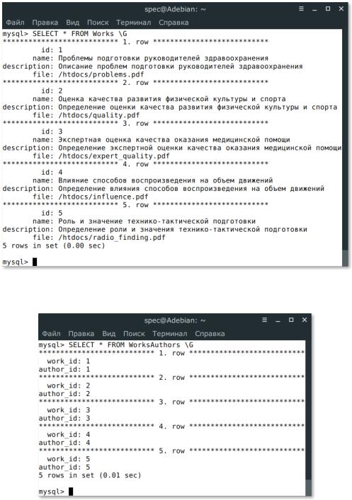 Рисунок 5 — Содержимое таблицы Reviews Выведем содержимое таблицы Works (рис. 6).