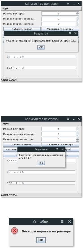 JOptionPane.showMessageDialog(null, "Ошибка работы с векторами", "Ошибка", JOptionPane.ERROR_MESSAGE);
