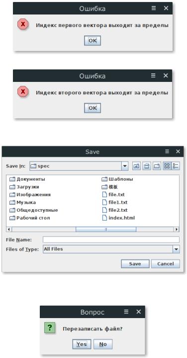 Рисунок 10 — Ошибка выхода за пределы второго индекса Все векторы можно сохранить, нажав на «Сохранить...» (рис. 11).