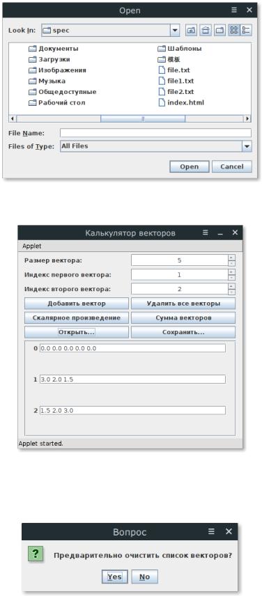 Рисунок 15 — Вопрос о предварительной очистке списка векторов Можно не очищать — тогда данные добавятся в конец.