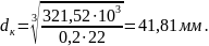 Диаметры валов определяются по формуле (приложение П.21) [1]: