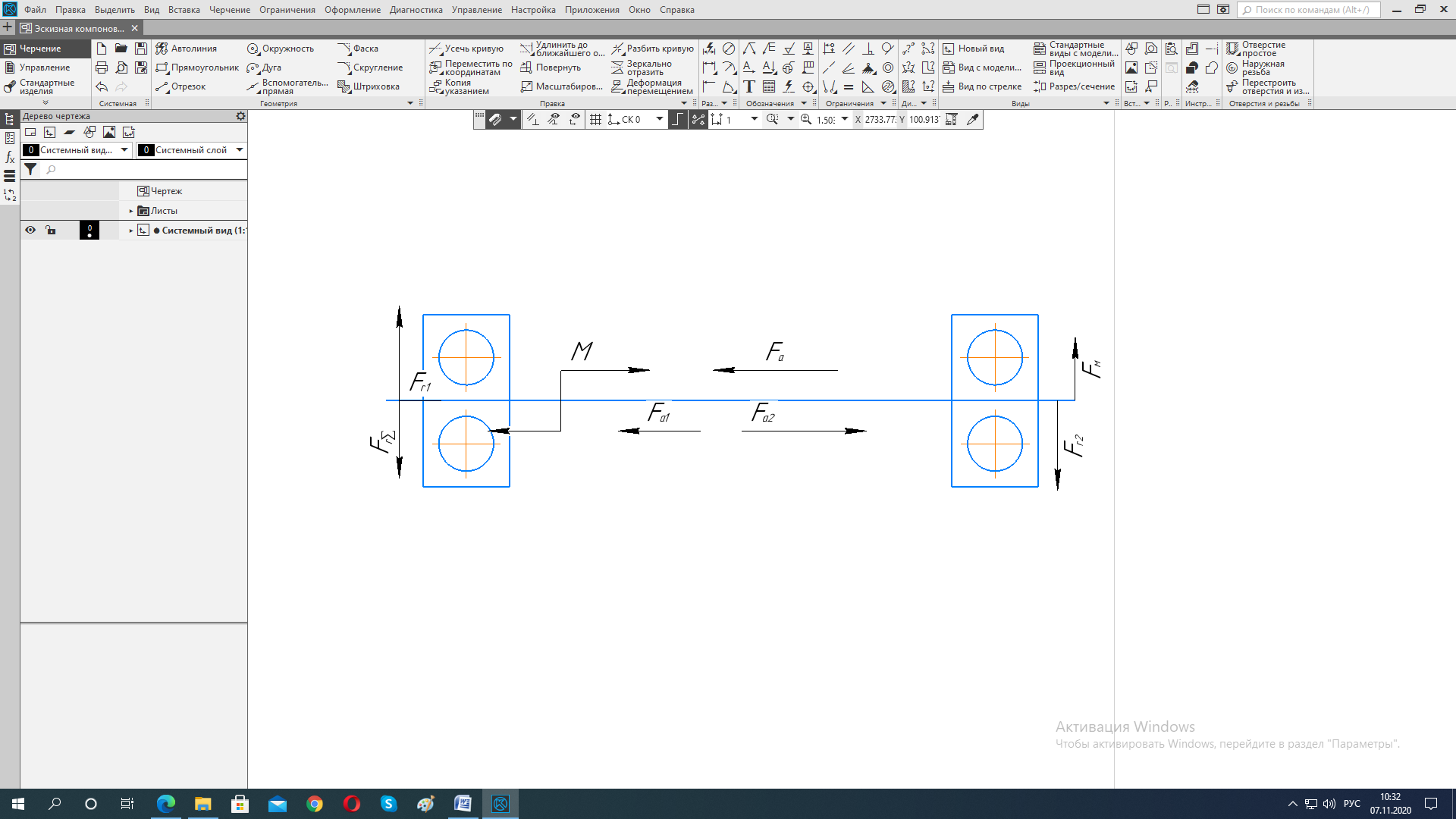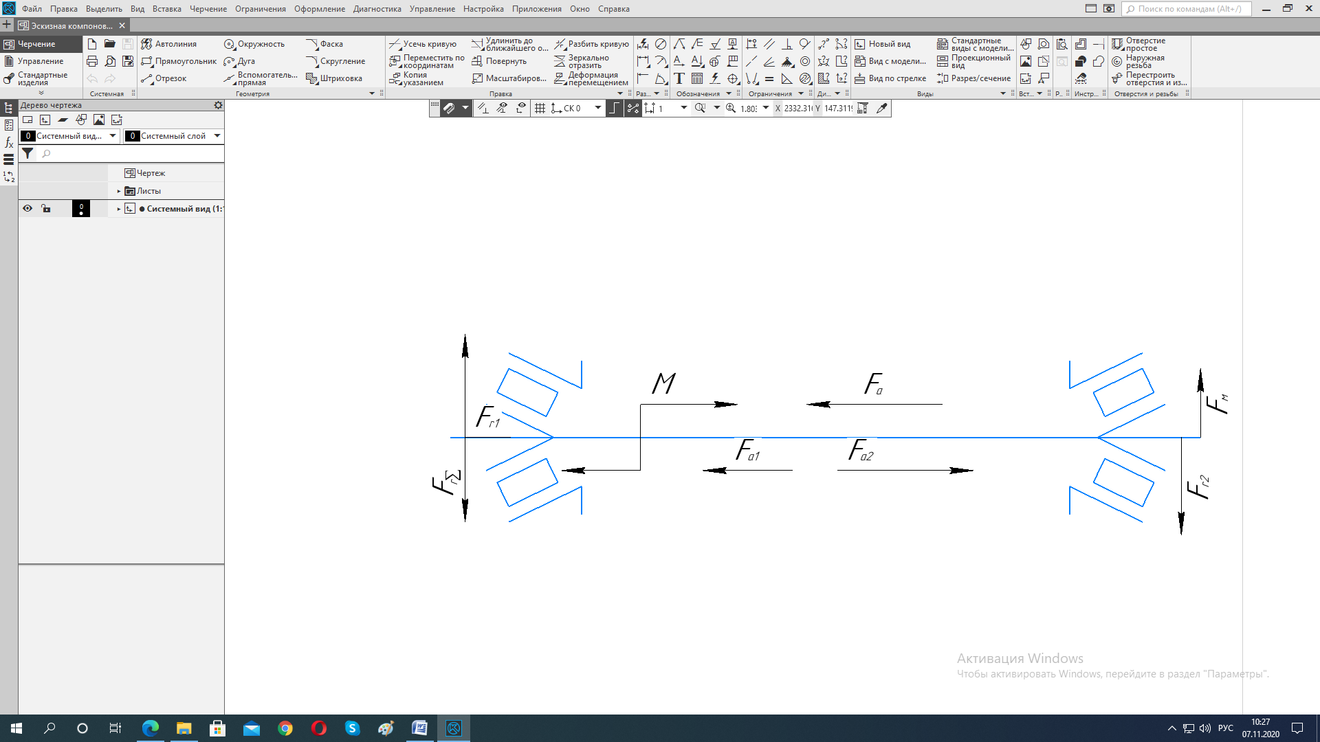 Выполняем проверочный расчет. Находим реакции опор: