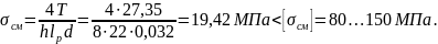 – напряжение смятия, МПа;