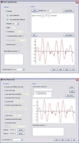 Після того як необхідні поля заповнені, необхідно обрати спосіб розв’язання – символьний або числовий – шляхом натискання на кнопку Solve Symbolically або Solve Numerically
