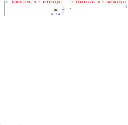 Якщо ви працюєте в класичному інтерфейсі або в стандартному інтерфейсі в режимі 1-D Math Input (у цей режим можна перейти так: Format → Convert to → 1-D Math Input), то майже для всіх maple-функцій математичного аналізу є їх абсолютний аналог, що лише записується з великої літери. Такі аналоги являють собою заданий вираз у звичному математичному вигляді. Наприклад, порівняйте для функції limit: