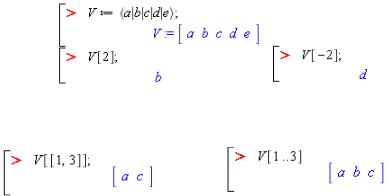 Для звертання до елемента вектора, необхідно зазначити його ім’я та в квадратних дужках – індекс. Причому якщо рахувати з кінця, то індекс від'ємний: