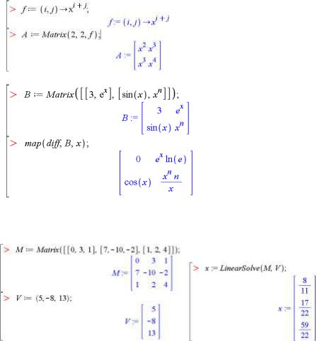 Пакет LinearAlgebra містить команди для різноманітних дій із векторами та матрицями, наприклад, створення та виконання перетворень, стандартних операцій та розв’язування задач лінійної алгебри. Більшість команд цього пакета є специфічними і детального розгляду в даному курсі не потребують. У таблиці 2.4 наведені вибрані та найбільш використовувані команди.