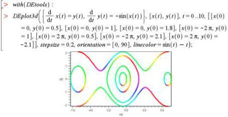 Ця функція будує розв’язок системи диференціальних рівнянь у вигляді просторових кривих, наприклад ліній однакового рівня або просто кривих у просторі. Поле напрямків ця функція не будує. При цьому повинна бути лише одна незалежна змінна.