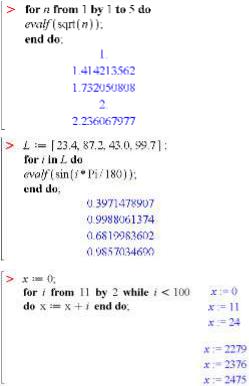 > for <лічильник> from <початкове значення> by <крок> to <кінцеве значення> do <елементи> end do.