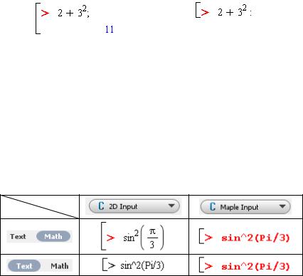 Але зауважимо, що двокрапка або крапка з комою є необхідними лише в режимах типу 1-D Math input.