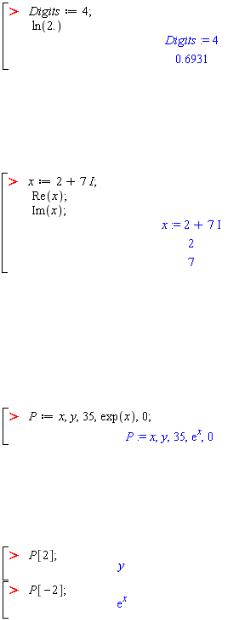 Для задання комплексного числа в алгебраїчній формі використовується константа уявної одиниці – I. Для виведення дійсної частини комплексного числа використовується функція Re(число), а уявної – функція Im(число):
