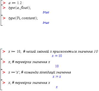 Використання змінних у математичних виразах та символьних розрахунках не потребує їх попереднього оголошення.