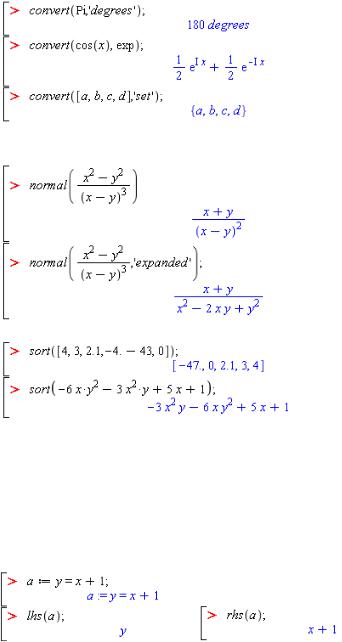 Для виконання найбільш поширених дій над виразами в загальному (символьному) вигляді в системі Maple передбачені такі функції: