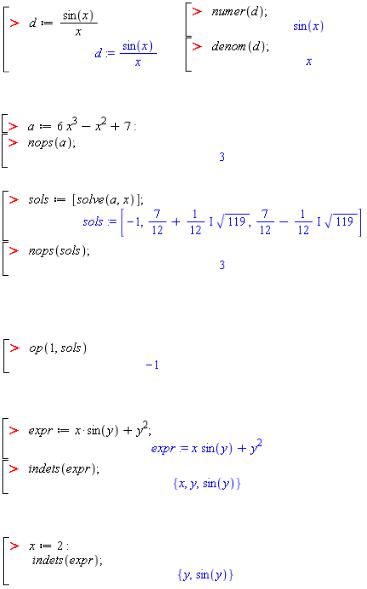 За необхідності «витягнути» частину компонентів будь-якого виразу для подальшої роботи з ними використовують такі команди Maple: