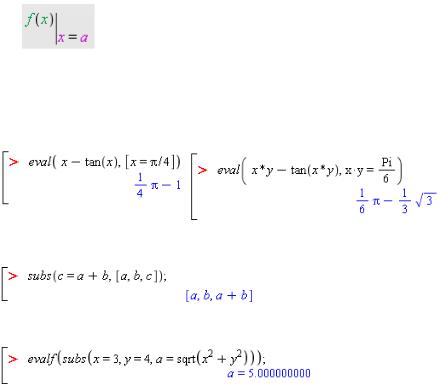 в) за допомогою функції subs(s1, s2, …, sn, expr), де si – вирази типу x = y, які підставляються у вираз expr :