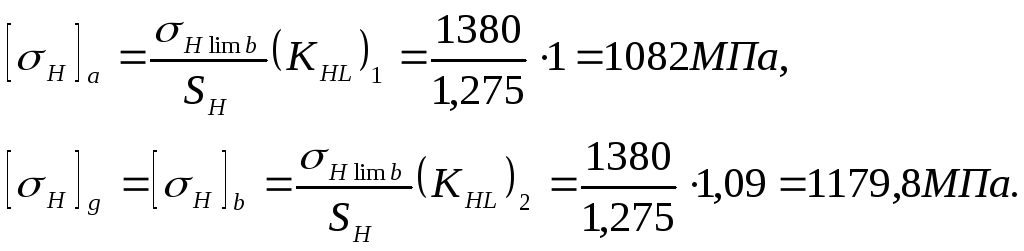 Исходя из этих данных рассчитаем допускаемые контактные напряжения для I-ой ступени.