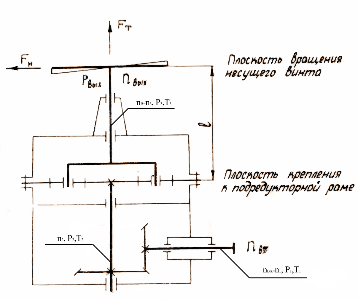 В курсовом проекте рассмотрен синтез, а также кинематический, энергетический, проектировочный расчёт и анализ редуктора вертолёта. Произведён подбор чисел зубьев зубчатых колёс, определены основные габариты передач, произведена проверка редуктора на контактную и изгибную прочность. Спроектирован альтернативный вариант редуктора. Произведена оценка диаметров валов, предварительный подбор подшипников. Рассчитаны силы в зацеплении. Произведены расчеты: подшипников по долговечности, валов на прочность, шлицевых соединений, болтов крепления редуктора к раме вертолета. Создана система смазки редуктора.
