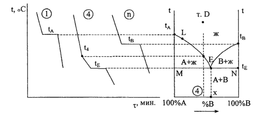 сплавов,имеющих состав от 100%А до точки