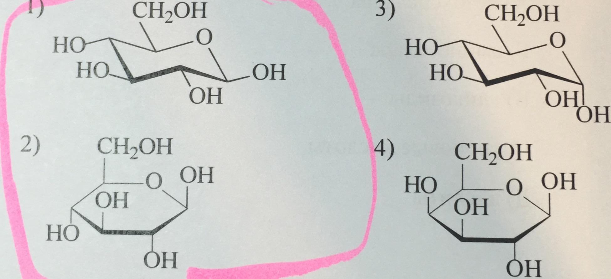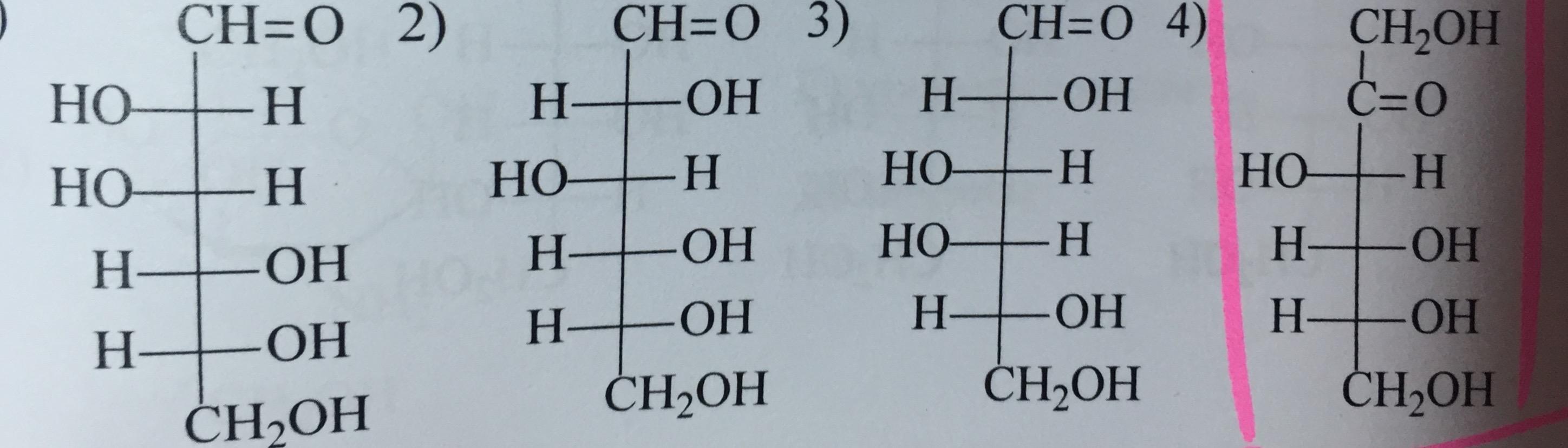 1) различаются конфигурацией атомов С-1 в альдозах и С-2 в кетозах