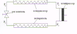 Холодильная машина представляет собой замкнутую систему аппаратов и устройств,осуществляющих холодильный цикл, т.е. круговой тепловой процесс рабочего вещества(хладагента).