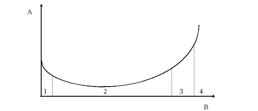 Изменение вредности (А) в зависимости от интенсивности ЭМП (В).