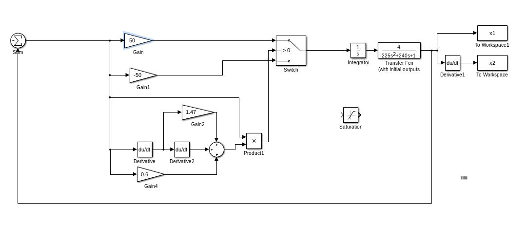 Структурная схема СПС со скользящим режимом и управлением вида u = ψx1