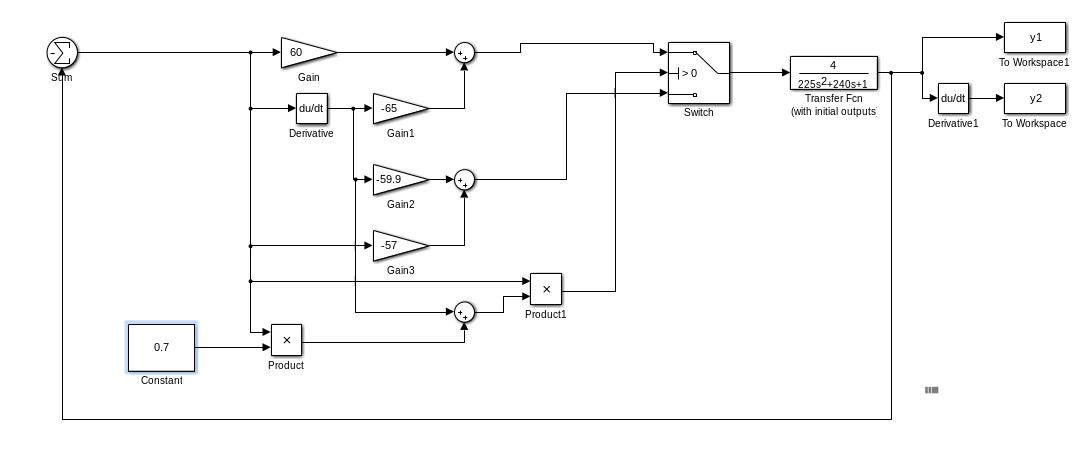 Структурная схема системы с переменной структурой без устойчивого вырожденного движения с учетом рассчитанных коэффициентов приведена ниже: