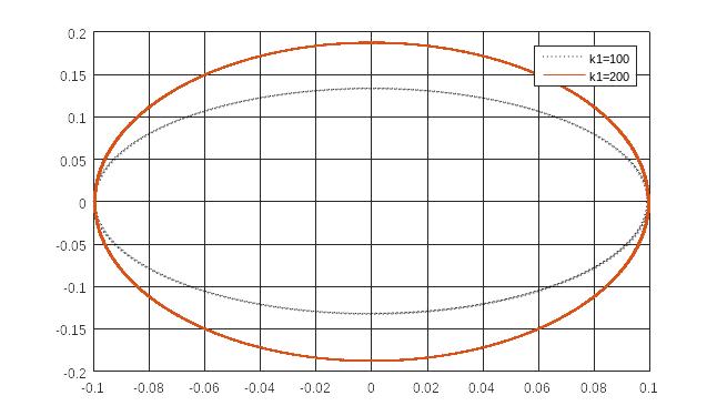 3.9. Фазовые траектории при к1=100, к1=200.