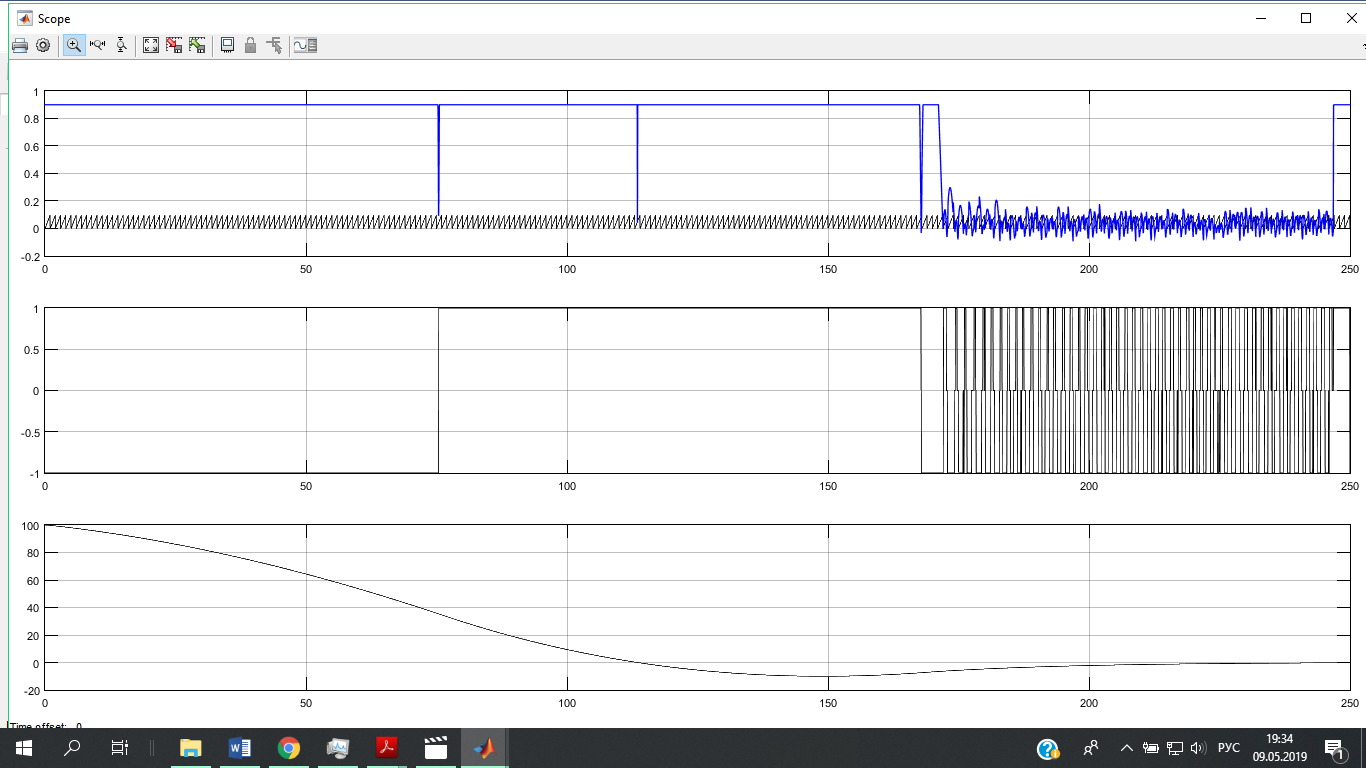 Дальнейшие исследования необходимо выполнить моделированием. Путём последовательных приближений необходимо определить значение периода квантования Ткр, при котором устойчивая без модулятора система становится неустойчивой.