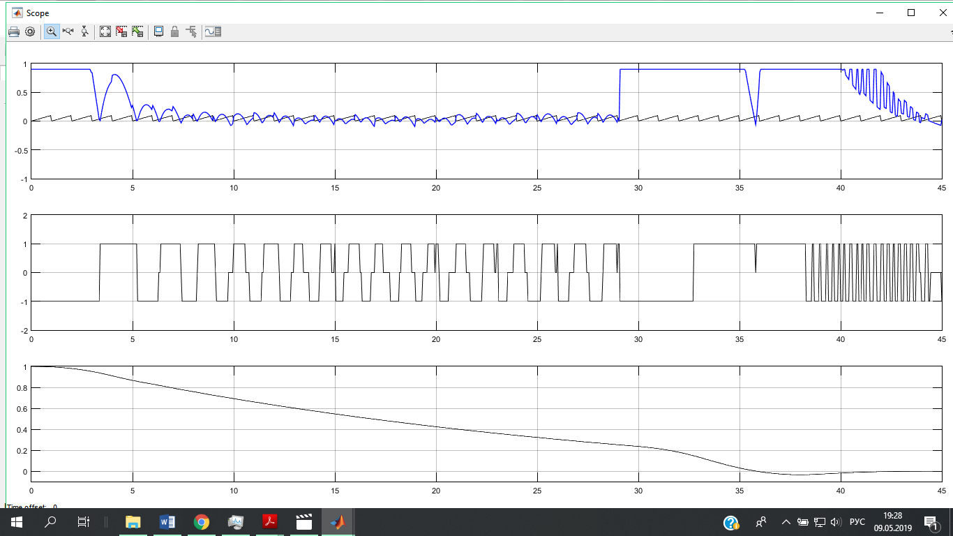 Точность поддержания выходной координаты в установившемся режиме менее 0.5%;