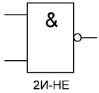 «И-НЕ» - логический элемент, выполняющий над входными данными операцию логического сложения, и затем операцию логического отрицания, результат подается на выход. Другими словами, это в принципе элемент «И», дополненный элементом «НЕ». На рисунке приведено условное обозначение логического элемента «2И-НЕ».