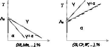 Рис. 9.1. Влияние легирующих элементов на полиморфизм железа