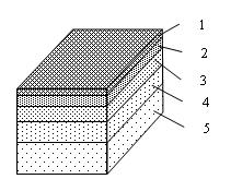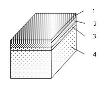 Рис 10.6. Схема композиционной структуры материала после электроискрового легирования: 1 – зона тонкопленочных или сплошных формирований; 2 – зона смеси материалов анода и катода; 3 – зона сформированная за счет диффузии элементов легирующего электрода в упрочняемой матрице катода-детали; 4 – зона термического