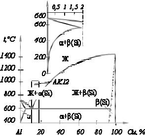 Рис. 16.5. Диаграмма состояния системы «Al–Si».