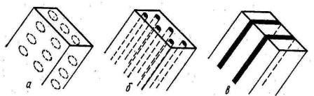 Рис. 17.6. Схема строения композиционных материалов: а – дисперсно-упрочненные; б – волокнистые; в – слоистые