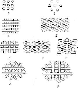 4 – с искривленными волокнами, 5 – система из n нитей