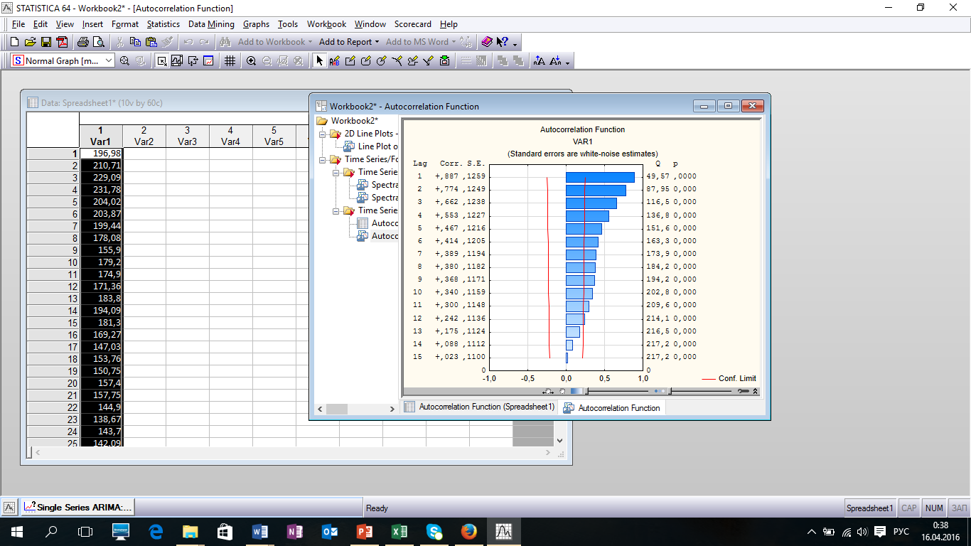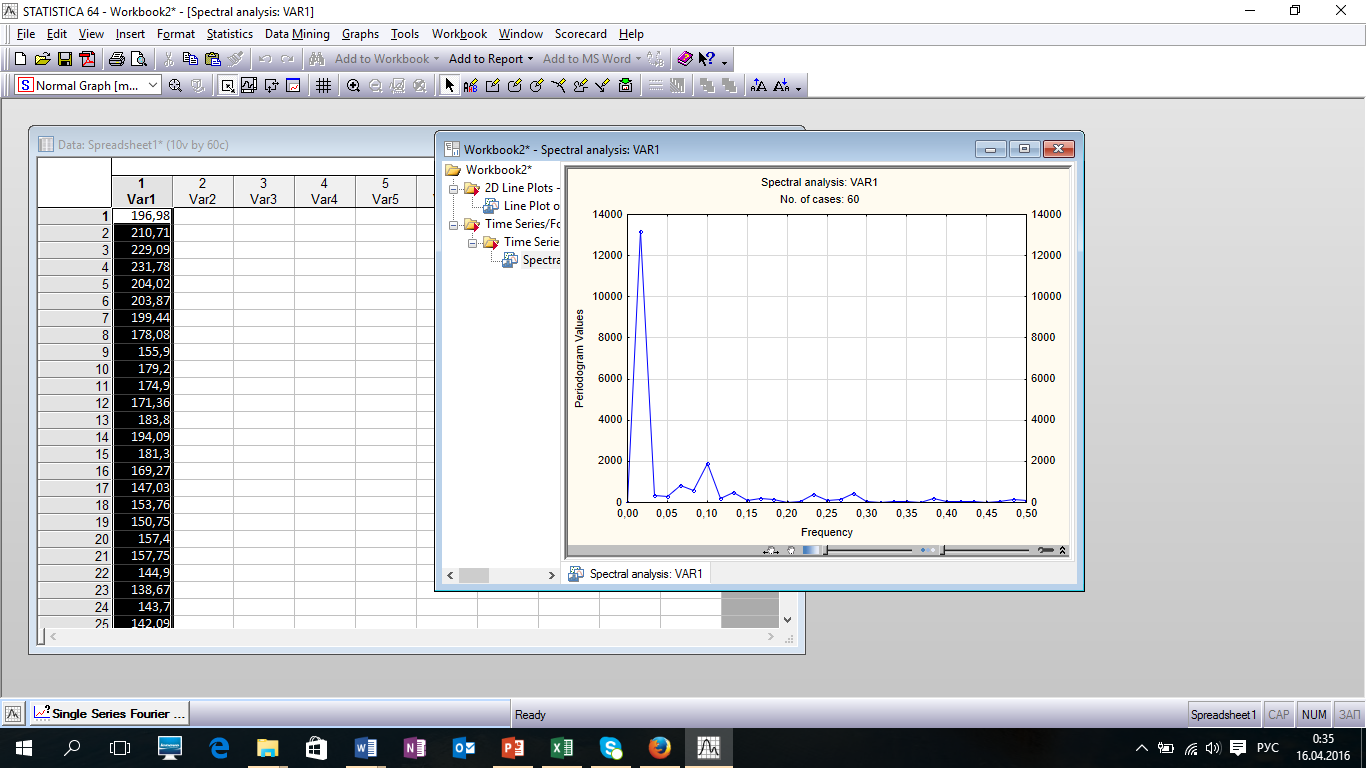 3) Исследование структуры временного ряда на основе инструмента спектрального анализа в Статистике.