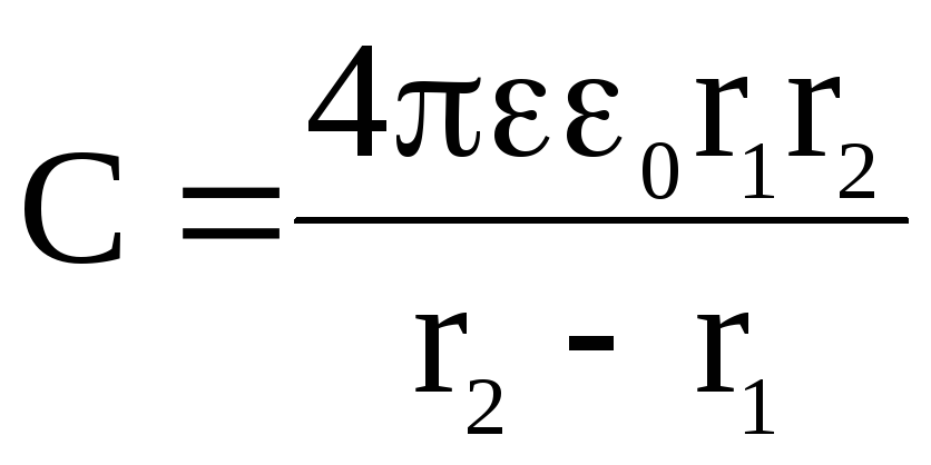 Емкость сферического конденсатора находят исходя из выражений: